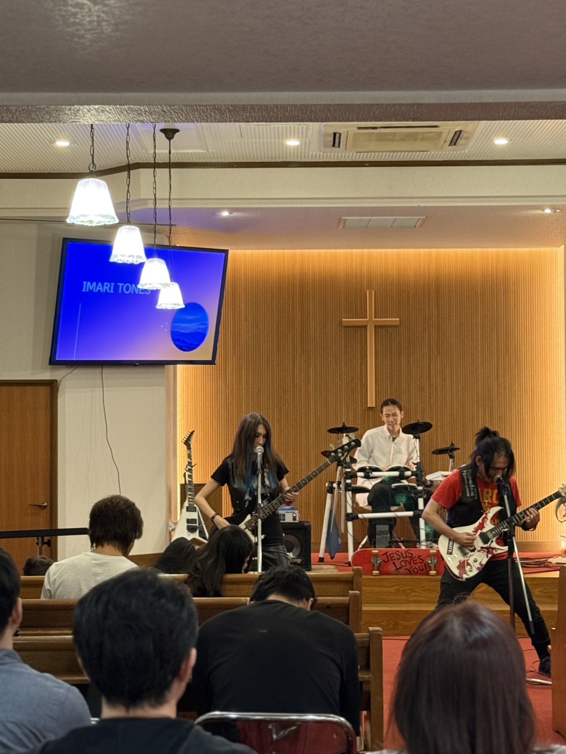 僕たちImari Tonesにとっては、この日の演奏は、二十歳の若き新ドラマーKenshinが加入してから2度目の公式なライブでした。僕たちは絶好調の演奏を披露しました。音楽的にもタイトかつ、スピリット(霊的、精神的)にもハイテンションで、強いメッセージを放ちました。教会という環境の下、あまり大きな音を出すことはできませんでしたが、最高のものをお届けできたのではないかと思います。