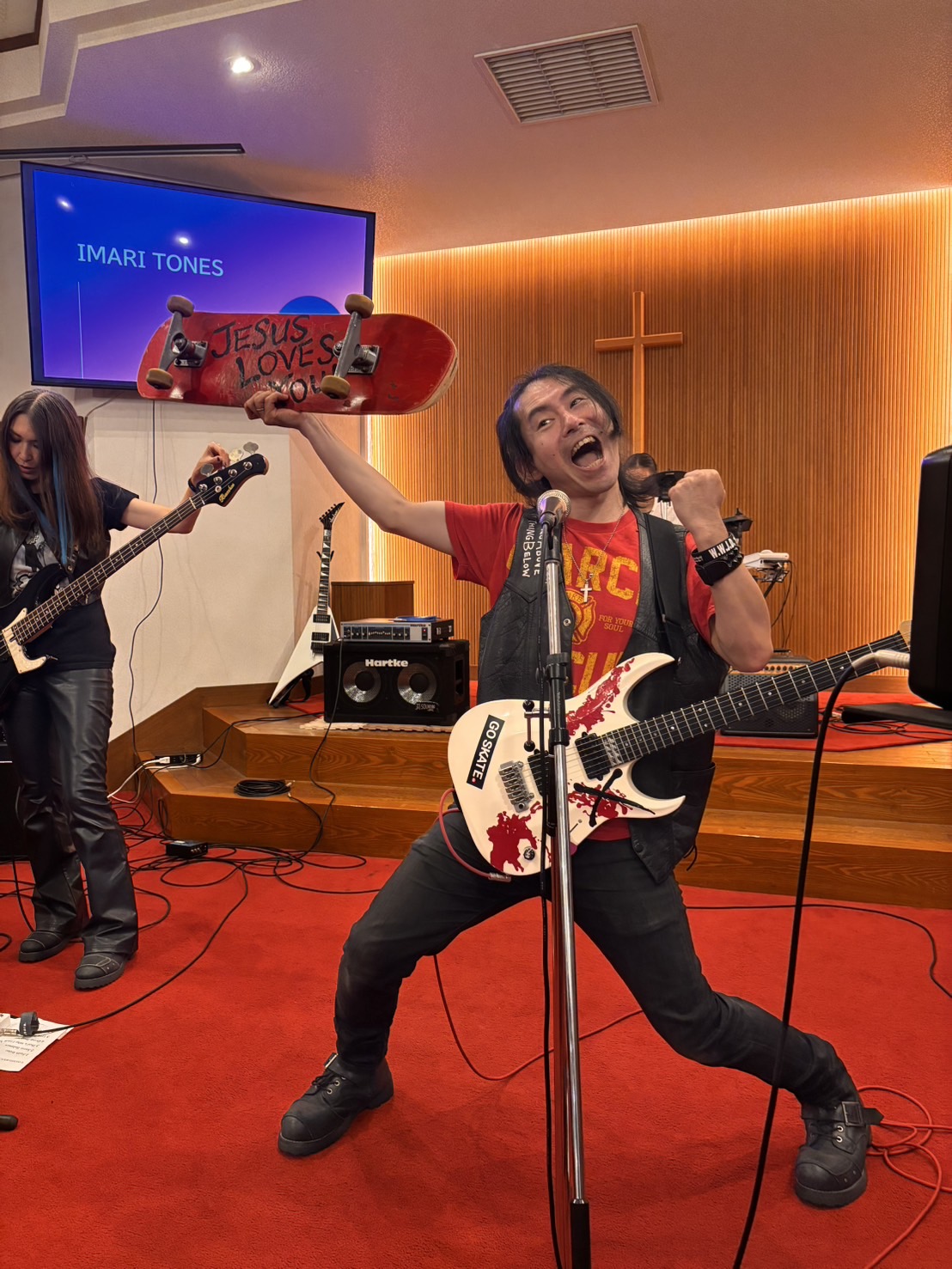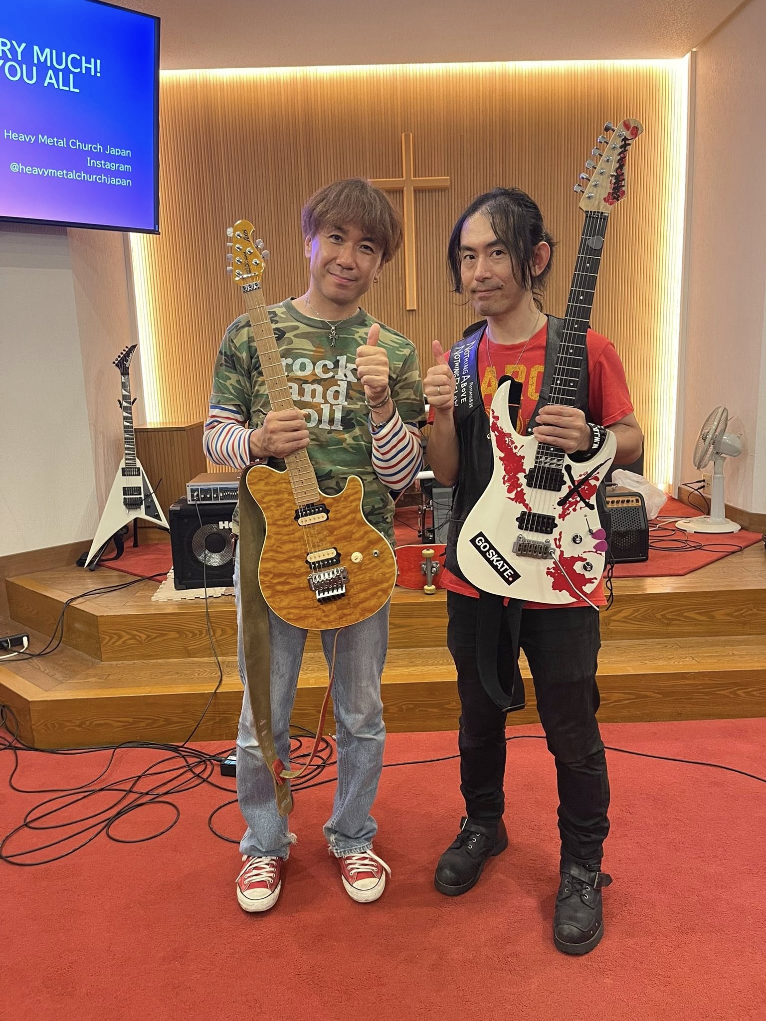 ご自身もゴスペルアーティストである大島信弘さんは、ヘヴィメタルワーシップチームの一員としてギターを弾いてくれました。ハードロック好きのギターキッズ同士、いくらでも話が続いてしまいます。